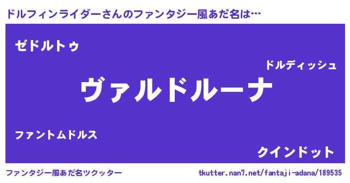 | 男性向けラノベタイトル風あだ名 | 『この素晴らしい世界にドルフィンライダーを!』 |