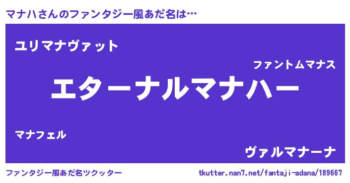 | 欧米人風あだ名 | 『マナハクリステル』『トリンドルマナハ』 |