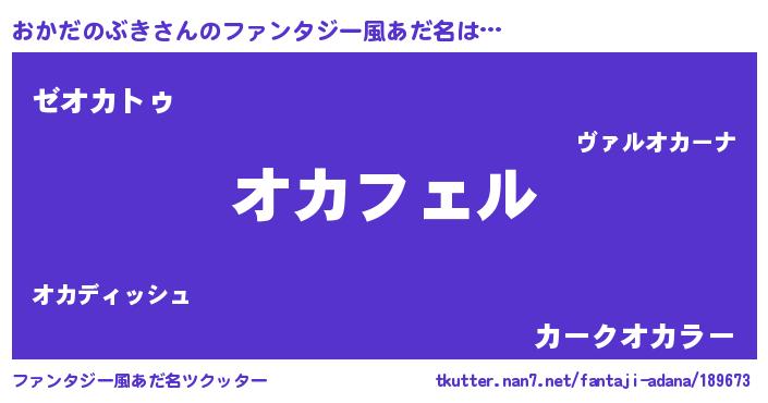 | 女子向けラノベタイトル風あだ名 | 『おかだのぶき姫と円卓の騎士』 |