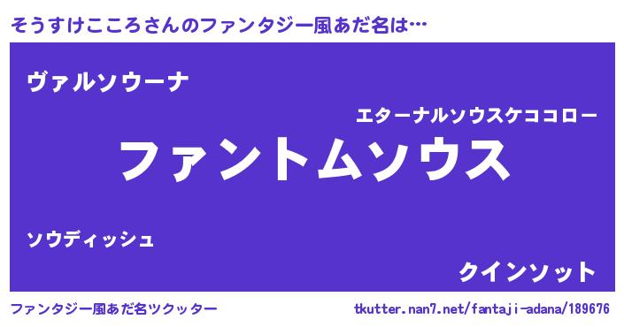 | ポケモン風あだ名 | 『ヒソウスケココロ』『ソウゴンZ』 |