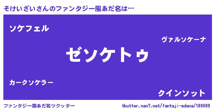 | 男性向けラノベタイトル風あだ名 | 『Re:そけいざいから始める異世界生活』 |