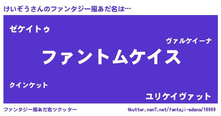 | ヒーロー風カッコイイあだ名 | 『黄金騎士ケイ』『究極戦士ケイゾウ』 |