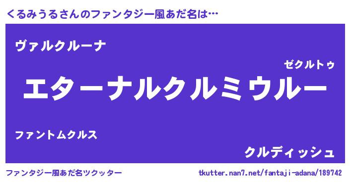 | 男性向けラノベタイトル風あだ名 | 『くるみうるに滅ぼされるだけの簡単なお仕事です』 |