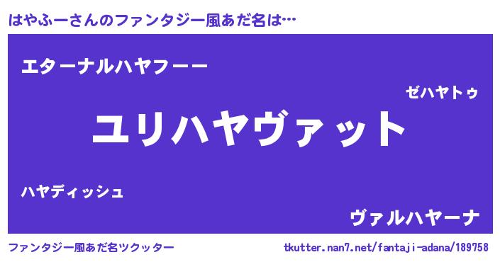 | 意味不明あだ名 | 『ヨモギ科はやふー属』『自称はやふー』 |