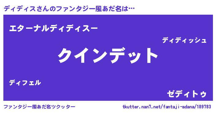 | 男性向けラノベタイトル風あだ名 | 『はたらくディディスさま!』 |