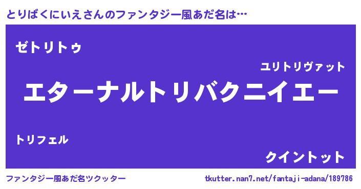 | 意味不明あだ名 | 『とりばくにいえフォーエバー』 |