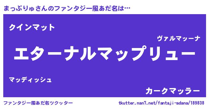 | 男性向けラノベタイトル風あだ名 | 『まっぷりゅに滅ぼされるだけの簡単なお仕事です』 |