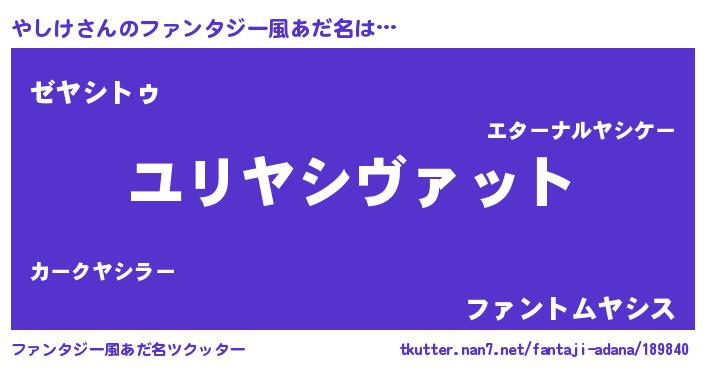 | ヒーロー風カッコイイあだ名 | 『ウルトラ戦士ヤシケ』『暗黒騎士ヤシ』 |