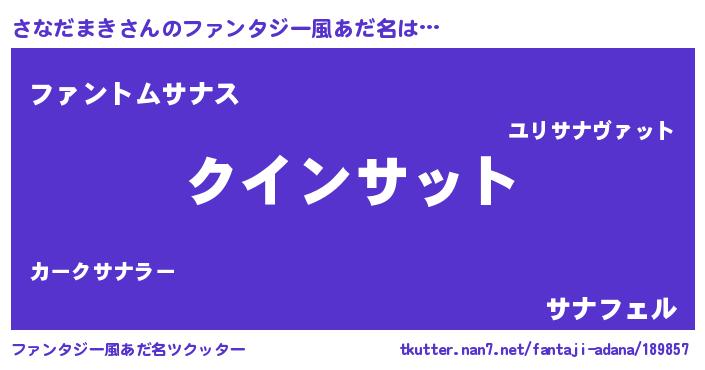 | ヒーロー風カッコイイあだ名 | 『天空の使者さなだまき』『魔戒騎士サナ』 |
