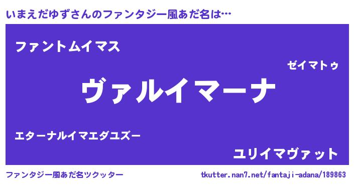 | 男性向けラノベタイトル風あだ名 | 『魔弾の王といまえだゆず』 |