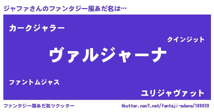 | 男性向けラノベタイトル風あだ名 | 『この素晴らしい世界にジャファを!』 |