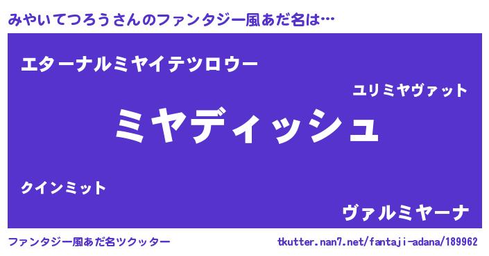 | ヘコむあだ名 | 『みやいてつろう(笑)』『豆乳』 |