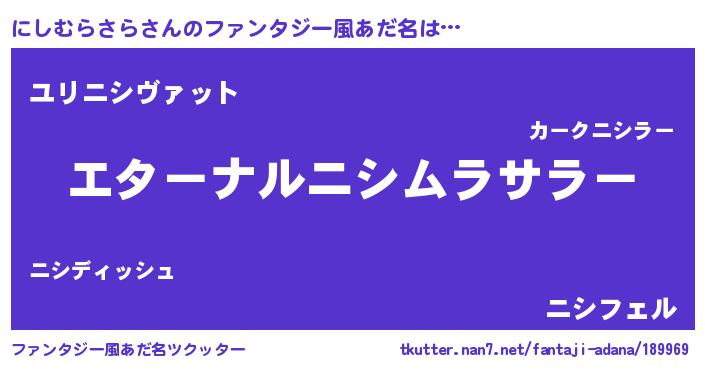 | 意味不明あだ名 | 『にしむらさらフォーエバー』 |