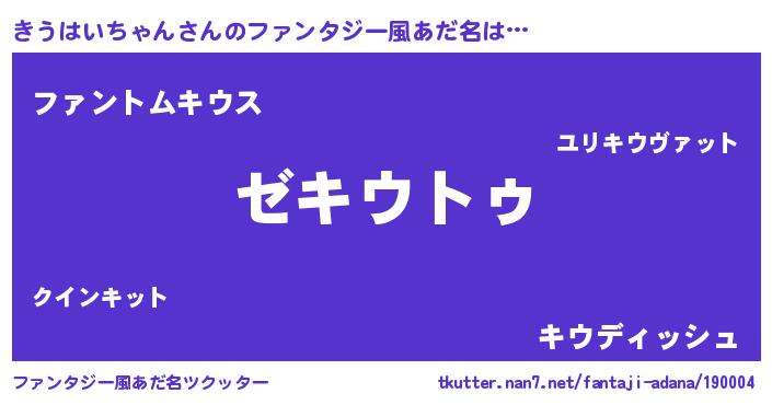 きうはいちゃんさんのファンタジー風あだ名をツクッター!