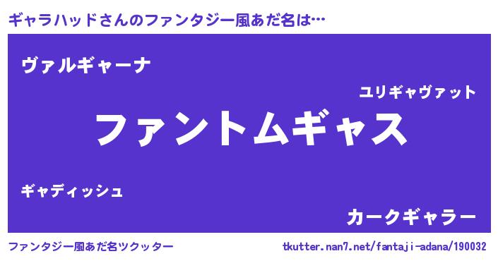 | ポケモン風あだ名 | 『ヒギャラハッド』『ギーャイ』 |