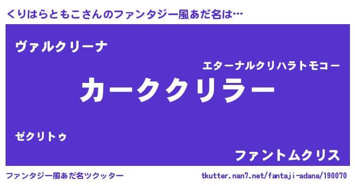 | 女子向けラノベタイトル風あだ名 | 『シンデレラくりはらともこ家の靴箱館』 |