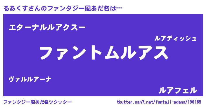 | ヘコむあだ名 | 『るあを』『酢こんぶ』『るあにー』 |