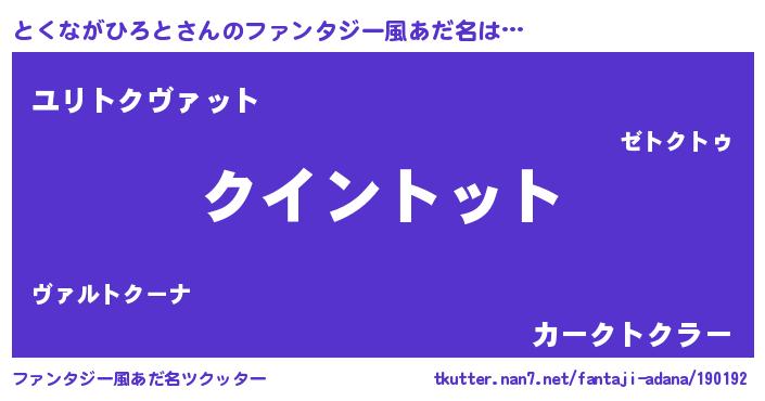 | 男性向けラノベタイトル風あだ名 | 『とくながひろとに滅ぼされるだけの簡単なお仕事です』 |