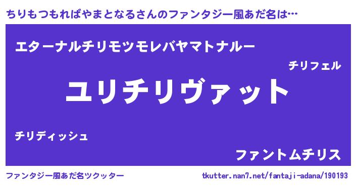 | 男性向けラノベタイトル風あだ名 | 『チリモツモレバヤマトナルスレイヤー』 |