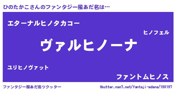 | 胡散臭い通販商品みたいなあだ名 | 『あなたにだけ特別に提供する世界で10本だけ現存している希少なブランデー…その名も「ひのたかこ」』 |