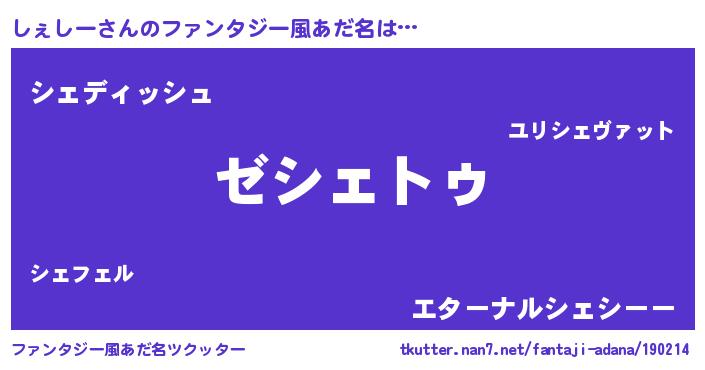 | 意味不明あだ名 | 『自称しぇしー』『永久保存しぇしー』 |