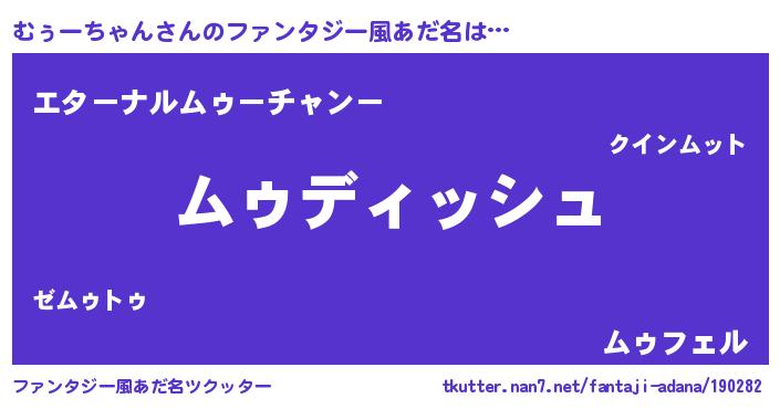 | 女子向けラノベタイトル風あだ名 | 『異世界で失敗しない100のむぅーちゃん』 |