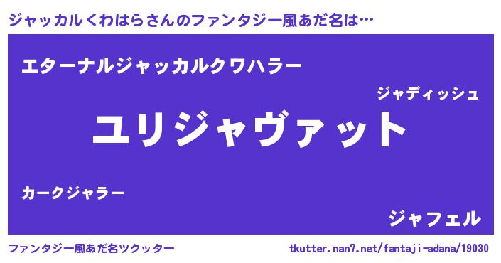 | 欧米人風あだ名 | 『トリンドルジャッカルくわはら』 |