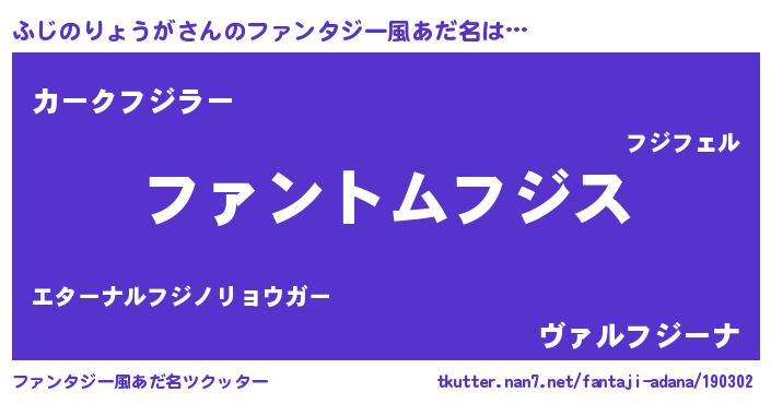 | 男性向けラノベタイトル風あだ名 | 『ふじのりょうがの嫁は女の子じゃないと思った?』 |
