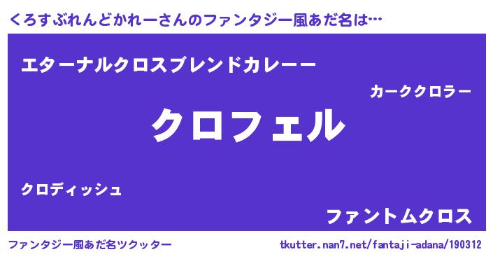 | 男性向けラノベタイトル風あだ名 | 『くろすぶれんどかれーの憂鬱』 |