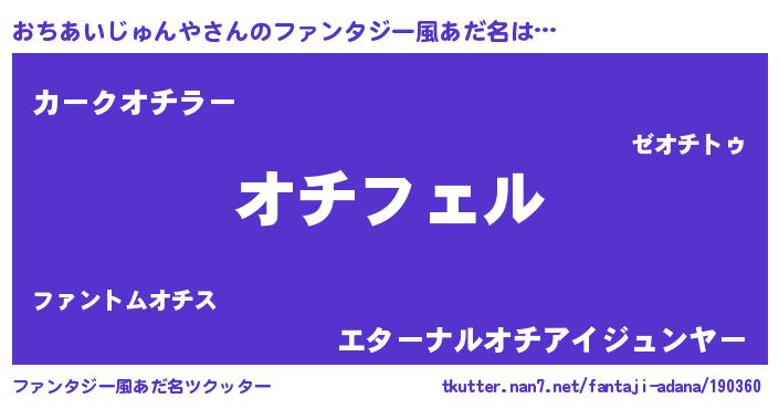 | 男性向けラノベタイトル風あだ名 | 『オチアイジュンヤアートオンライン』 |