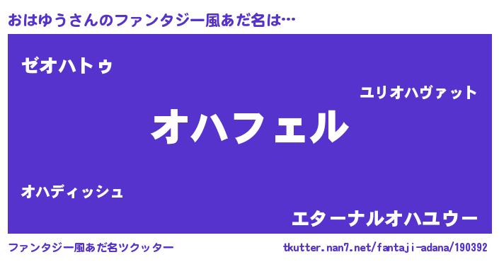 | ヒーロー風カッコイイあだ名 | 『スーパーオハユウ』『ネオオハユウ』 |