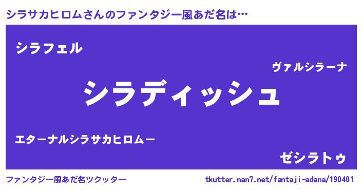 | 男性向けラノベタイトル風あだ名 | 『シラサカヒロムという概念が存在しない退屈な世界 』 |
