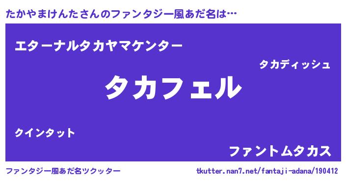 | 肩書あだ名 | 『たかやまけんた社長』 |