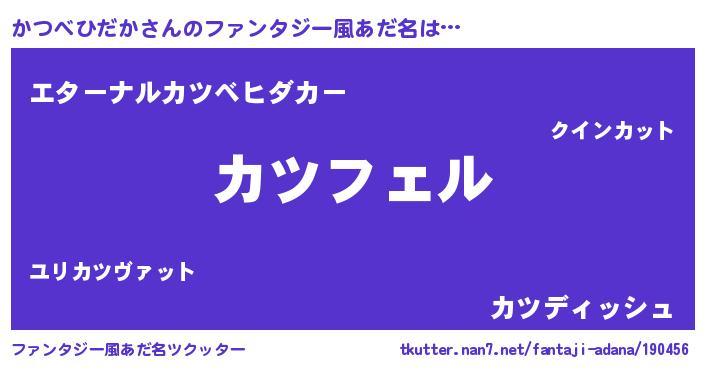| 男性向けラノベタイトル風あだ名 | 『かつべひだかの憂鬱』 |