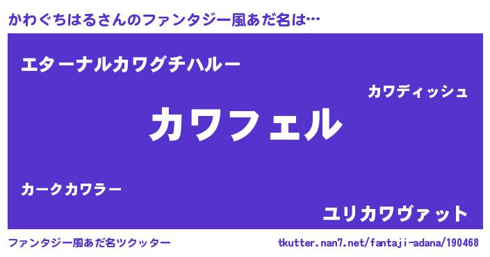 | 男性向けラノベタイトル風あだ名 | 『カワグチハルアートオンライン』 |