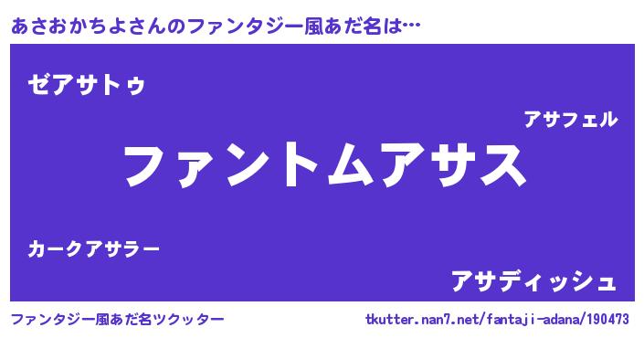 | ヒーロー風カッコイイあだ名 | 『幻影騎士アサ』『ネオアサオカチヨ』 |