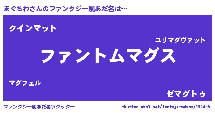 | ヒーロー風カッコイイあだ名 | 『黄金騎士マグ』『慈愛の使者まぐちわ』 |