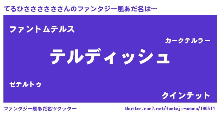 | 男性向けラノベタイトル風あだ名 | 『てるひさささささに滅ぼされるだけの簡単なお仕事です』 |