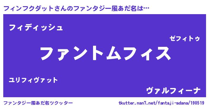 | 女子向けラノベタイトル風あだ名 | 『フィンフクダットは平凡を望む』 |