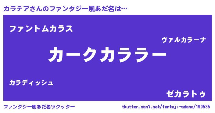 | 意味不明あだ名 | 『とにかく怪しいカラテア』 |