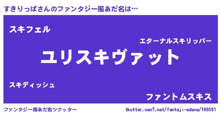 | ヒーロー風カッコイイあだ名 | 『スーパースキリッパ』『暗黒騎士スキ』 |