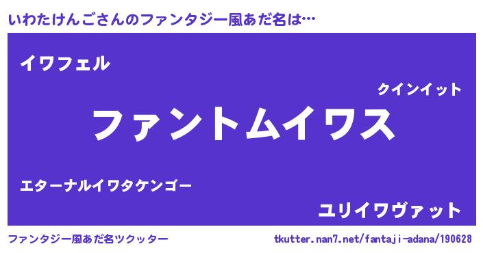 | 欧米人風あだ名 | 『ウサインいわたけんご』 |