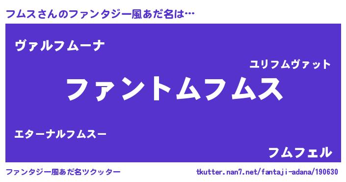 | ポケモン風あだ名 | 『ヒフムス』『フームイ』『フムゴンZ』 |
