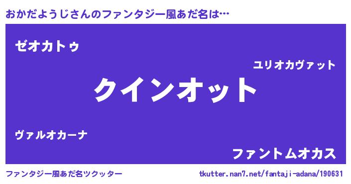 | 男性向けラノベタイトル風あだ名 | 『ノーゲーム・ノーオカダヨウジ』 |