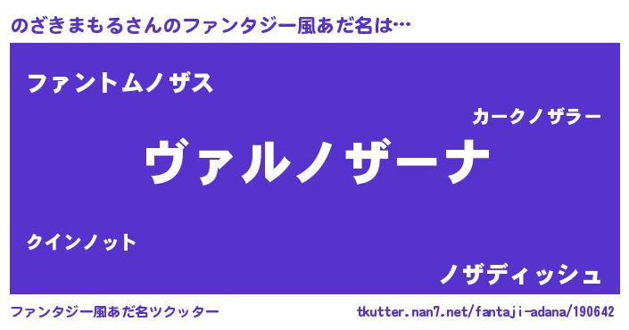 | 男性向けラノベタイトル風あだ名 | 『魔弾の王とのざきまもる』 |