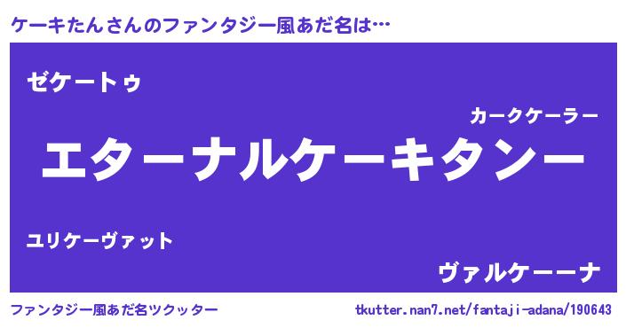 | 肩書あだ名 | 『ケーキたん国家主席』『ケーキたん閣下』 |