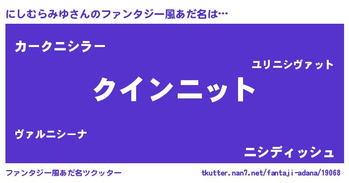| 意味不明あだ名 | 『眠気覚ましガムにしむらみゆ味』 |