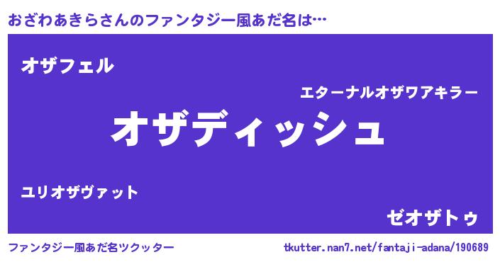 | 男性向けラノベタイトル風あだ名 | 『誰もが恐れるあのおざわあきらが、ぼくの専属メイドになるようです。』 |