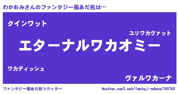 | 欧米人風あだ名 | 『わかおみクリステル』 |