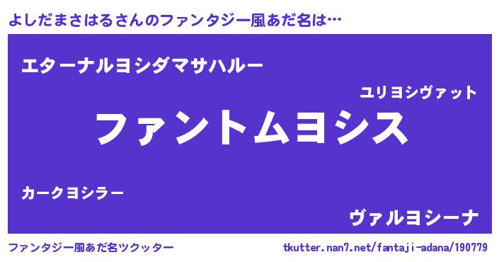 | ポケモン風あだ名 | 『ヒヨシダマサハル』『ヨシダダネ』 |